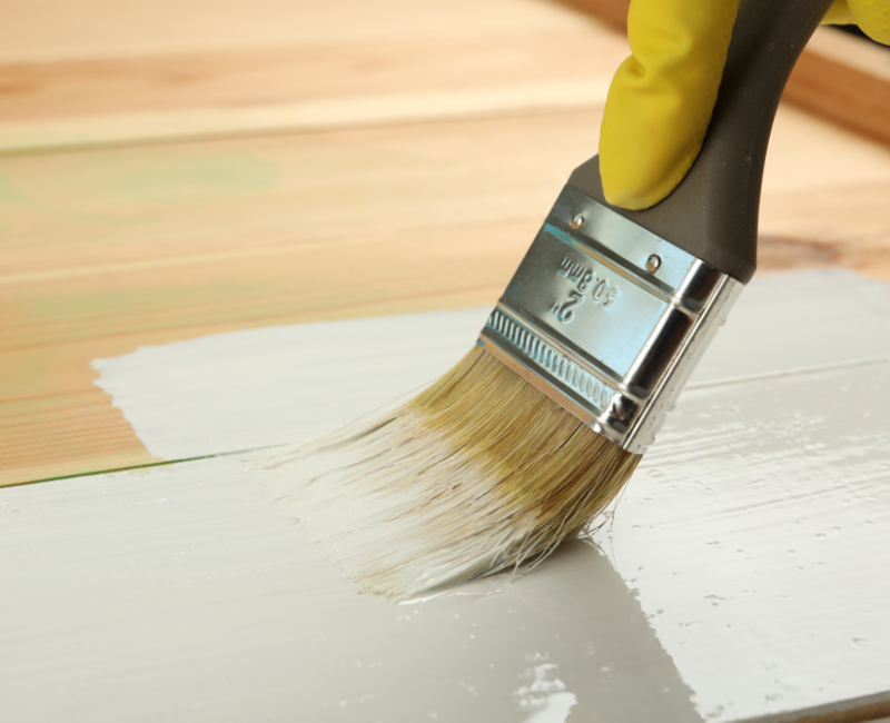 A water based paint with a low shine finish for suitably primed interior and exterior wood, metal and PVCu.