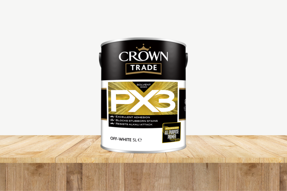 Crown Trade PX3 is a solvent based, adhesion promoting primer for interior & exterior use. Ideal for difficult substrates including glass, ceramic times, melamine and previously painted surfaces, as well as most wood and non-ferrous metals.